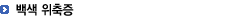 ¹é»ö À§ÃàÁõÀ̶õ ÇÏÁö¿¡ ¸Å²ö¸Å²öÇϸç, ÇǺΰ¡ ¿òÇ« µé¾î°£ µµÀڱ⠸ð¾çÀÇ Èò»ö ¹ÝÁ¡ÀÇ ¾ç»óÀ» ¸»ÇÕ´Ï´Ù. ´ë°³ ÀÌ Èò ¹ÝÁ¡ ÁÖÀ§·Î »ö¼Ò°¡ ¸¹ÀÌ Ä§ÂøµÇ¾î ¾ó·è´ú·èÇϸç, µ¿¸Æ °æÈ­, °áÇÙ, ´ç´¢, ¿ïÇ÷¼º ÇǺο° µîÀÌ ÀÖ´Â °æ¿ì¿¡µµ ¹é»öÀ§ÃàÁõÀÌ ¹ß°ßµÇ±âµµ ÇÕ´Ï´Ù.